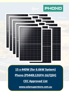 Kit de panel solar Phono de 6,6 kW para el hogar (15 x 440 W - PS440L12GFH) con aprobación CEC
