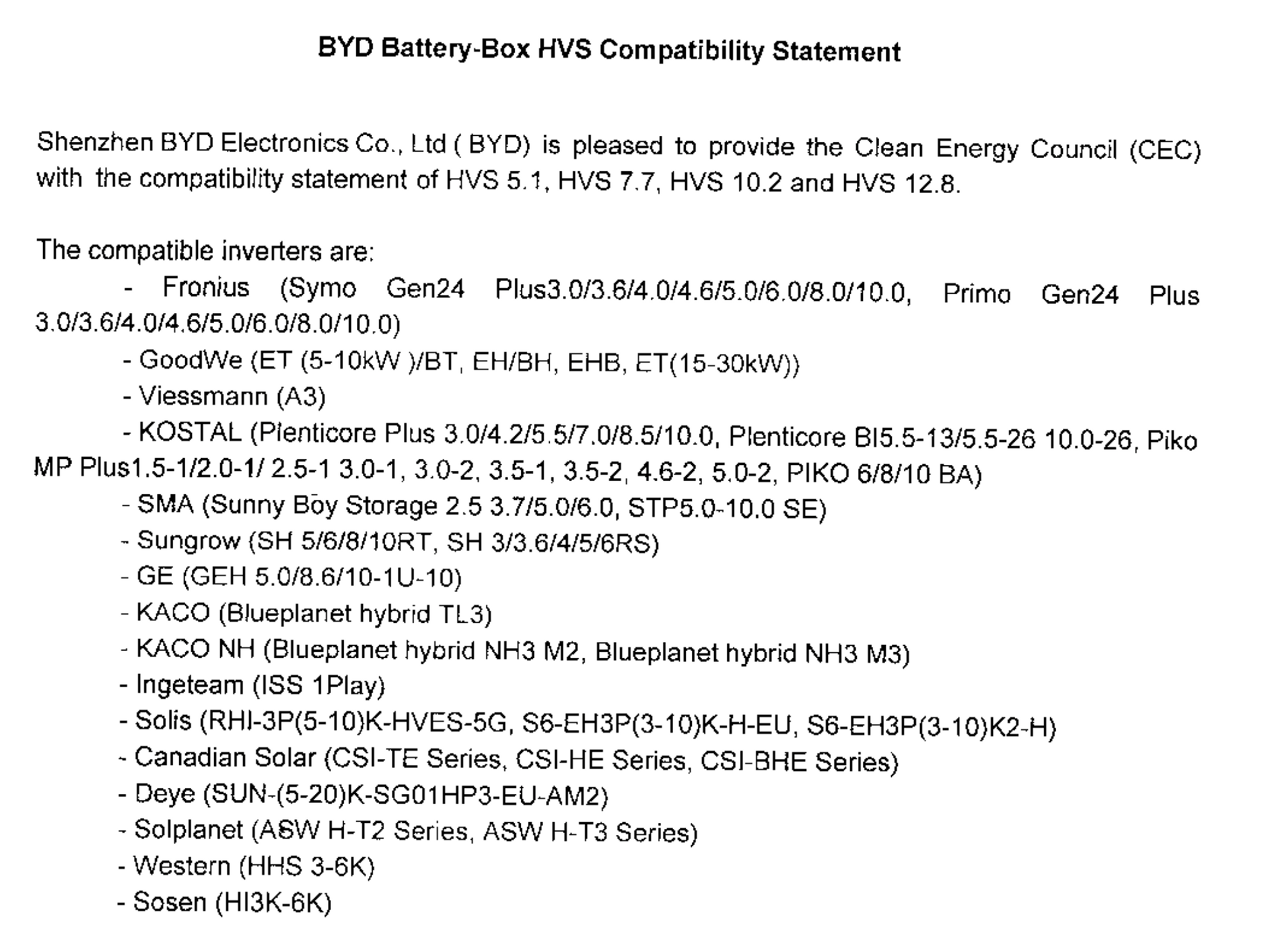 Inverter Compatibility: BYD HVS 10.2 kWh Battery