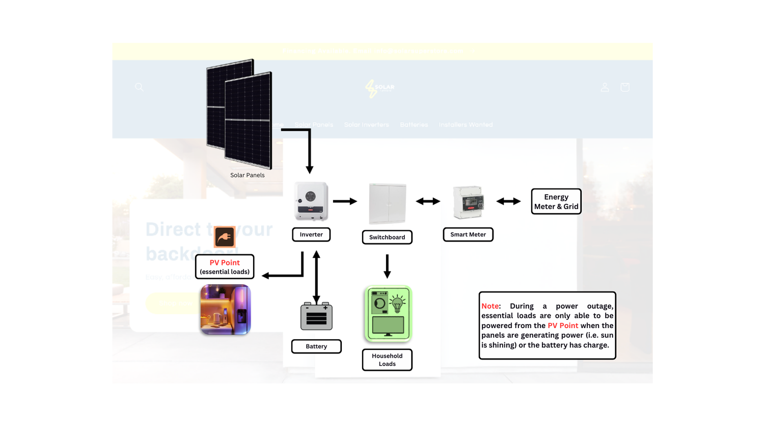 2. Without Battery: Fronius Primo GEN24 5.0 can support essential loads when the sun is shining.