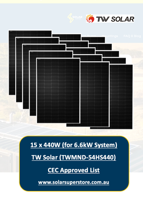 6.6kw TW Solar Panel Kit for Home (15x440W - TWMND-54HS440) CEC Approved
